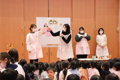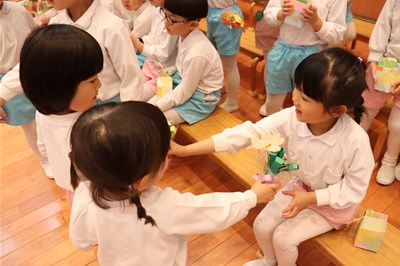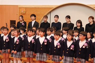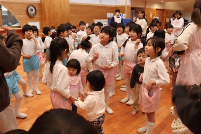 内部ハートピア保育園 2025年3月のアルバム お別れ会 ありがとうの気持ちを伝え合いました お別れ遠足 片道50分でも歩いたよ!楽しかったね ひな祭り会 ひな祭りの由来の話しを聞いたよ 一日入園の集い 入園が待ち遠しいですね 声楽コンサート 憧れの眼差し!歌手になりたいね 卒園式・修了式 40名の卒園、160名の進級、皆おめでとう! 思い出のアルバム 内部ハートピア保育園のアルバム