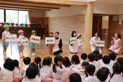 日永ハートピア保育園 2025年3月のアルバム 卒園式 この地域に必要な保育園ありがとう!! 保育活動 沢山の思い出ができたよ お別れコンサート 声楽の先生ありがとう 新入園児の一日入園 39名の新しいお友だち、こんにちは バスケット教室 初めてのバスッケット、上手く投げられなかった お別れ会 皆いつまでも友だちだよ お別れ遠足 新しい道は、夢と希望がいっぱい 思い出のアルバム 日永ハートピア保育園のアルバム