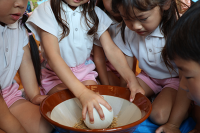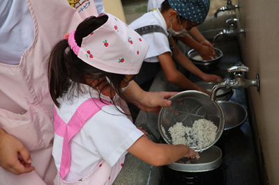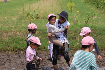 ハートピア保育園 2025年8月のアルバム お泊り保育 心に残る友だちとの一泊 稲刈り お米の大切さを学んだよ 泥んこ遊び 皆で泥んこ 年に一度のお楽しみ プール遊び 水とお友だちになったよ 保育活動 色々な体験を楽しもう 思い出のアルバム ハートピア保育園のアルバム