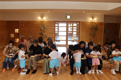 日永ハートピア保育園 2025年8月のアルバム 夏祭り お神輿は重いけど 皆で力を合わせてワッショイ 稲刈り ハートピア米の収穫とっても楽しかったよ 泥んこ遊び 服汚れたけど ママ怒らないでね? プール閉まい 夏の終わりの逞しい姿に感動! 稲の脱穀 60kgのお米がとれたよ 敬老の集い 孫との良き思い出ができたひと時 思い出のアルバム 日永ハートピア保育園のアルバム